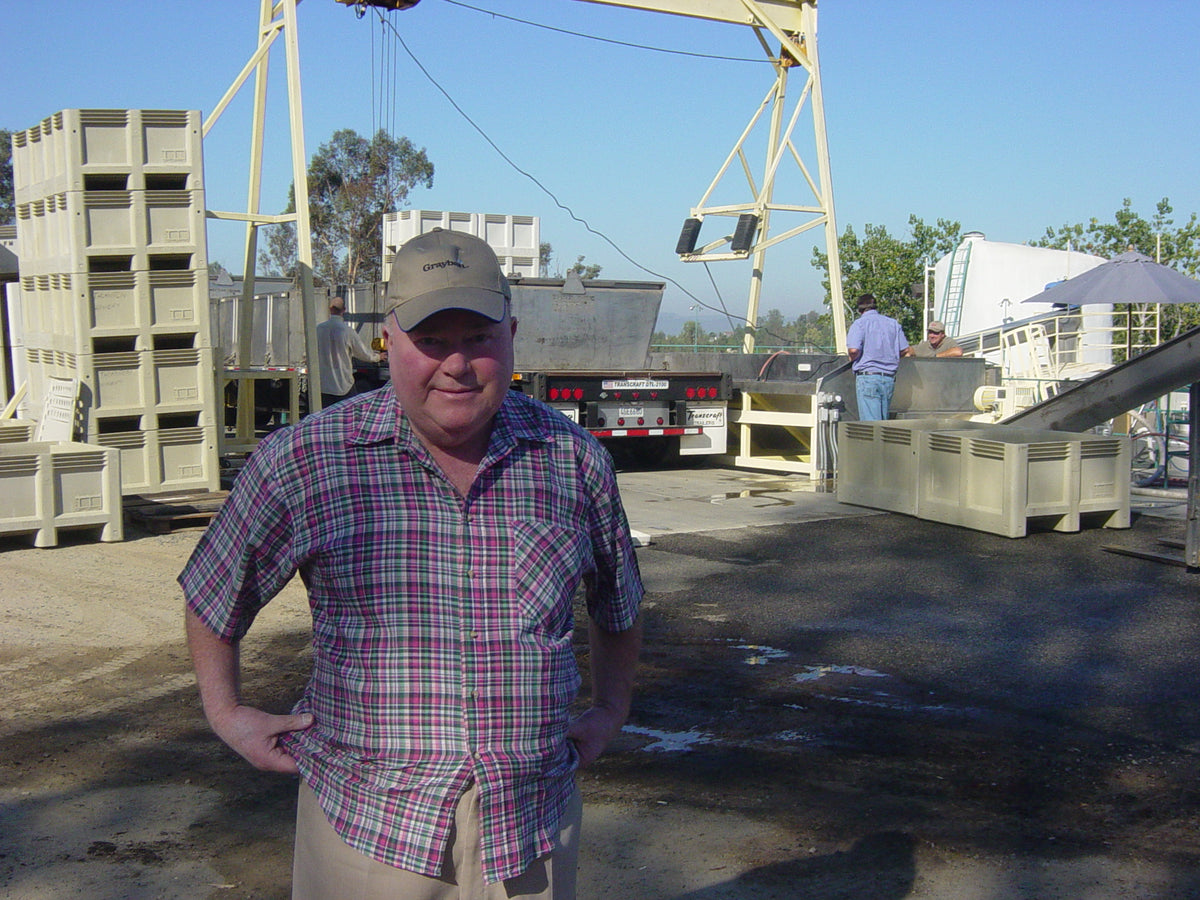 David Veness who sadly passed away in 2009 was the driving force behind the acquisition of our vineyard, pictured here observing the grape crush at harvest time in 2008.